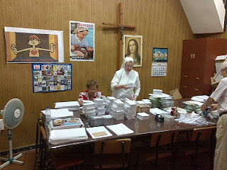 Colaboradores, en el Secretariado diocesano de misiones, haciendo paquetes para la Jornada de DOMUND 2010.