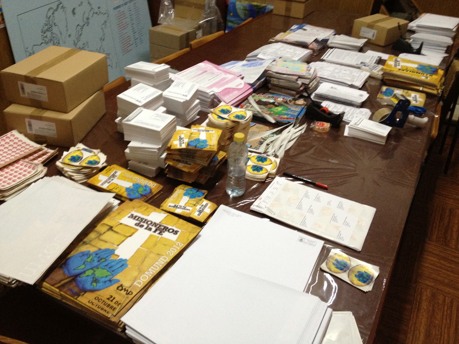 Empaquetando la Jornada misionera, DOMUND 2012, con energía y sin pausa, ya que queremos la semana que viene empezar la entrega de los paquetes. Así habría aún tiempo para en cada lugar poder hacer llegar cada paquete a su destinatario. Y todos podrían empezar a celebrar desde el día 1 de octubre, el MES DE LAS MISIONES por excelencia.